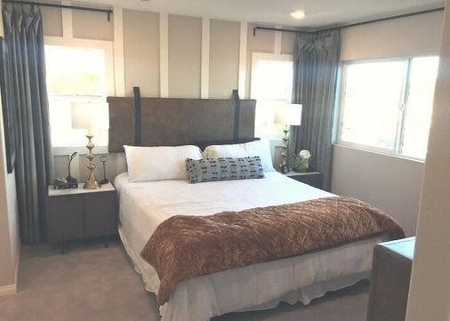 The new townhomes at Stonefield have attractive modern exteriors and interiors. For townhomes, I thought the bedrooms were larger than normal. Although the crime rate is higher than the national average, this community will be gated. The ceilings are nine feet for the first and second floor but only eight feet for the third floor. The standard countertops in the kitchen and bathrooms are white engineered stone; they look great for an included standard. The HVAC system is on the front patio; it's ideal to have the HVAC systems on the roof to be out of sight; it allows more room on the patio, and probably also not enjoyable to hear while outside. At this price point, I feel solar and more smart home features should have been included.